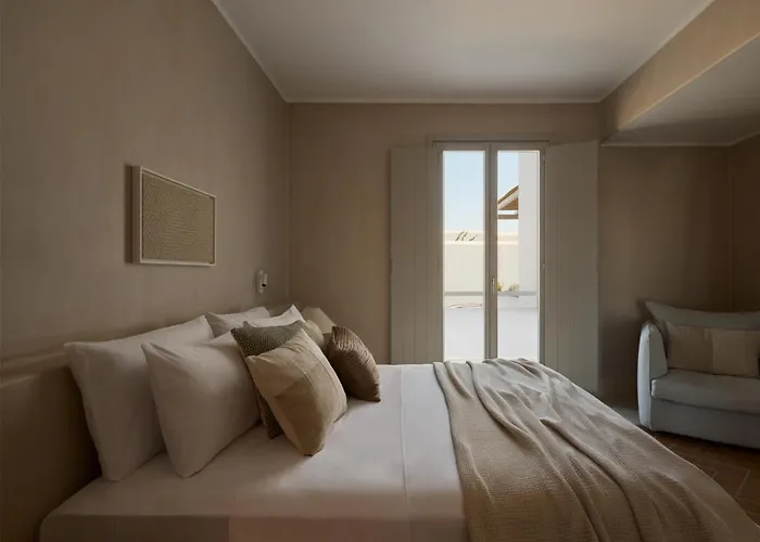 A Náusza városi ingatlan szobái klímaberendezéssel felszereltek. Némelyik erkéllyel és terasszal, szekrénnyel van berendezve. Hangszigetelt ablakokkal vannak bútorozva, valamint mini hűtőszekrénybárral és minibárral felszereltek. A külön WC-vel és zuhanyzóval ellátott fürdőszobák hajszárítót és zuhanysapkát is kínálnak. Az Akria Seaside Suites hotel szobái a városra néznek.